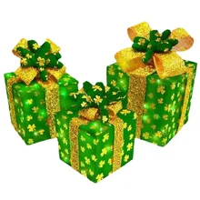 Set of 3 Christmas Lighted Gift Boxes LED Present Boxes Ornament With Ribbons for Xmas Tree Home Yard Lawn Decoration200(min.Order)